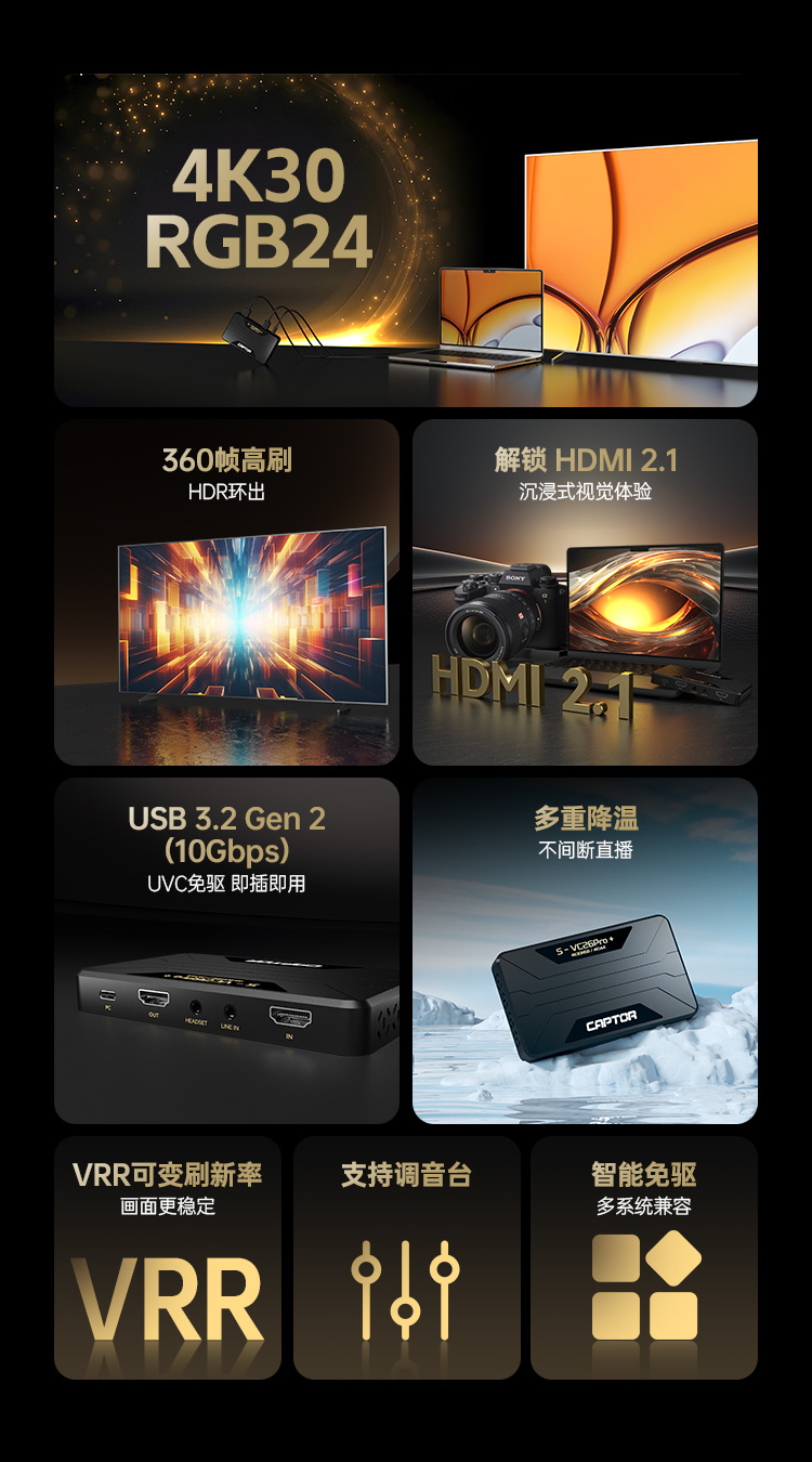 CAPTOR捕捉者 4K30/RGB24高清视频采集卡 S-VC26Pro+