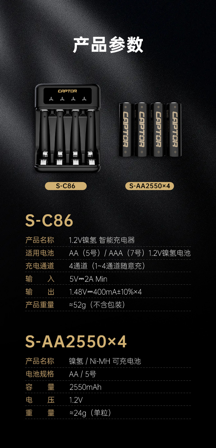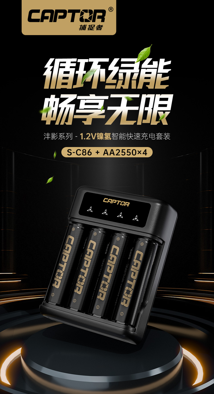 CAPTOR捕捉者 沣影系列 - 1.2V镍氢智能快速充电套装 S-C86 + AA2550*4