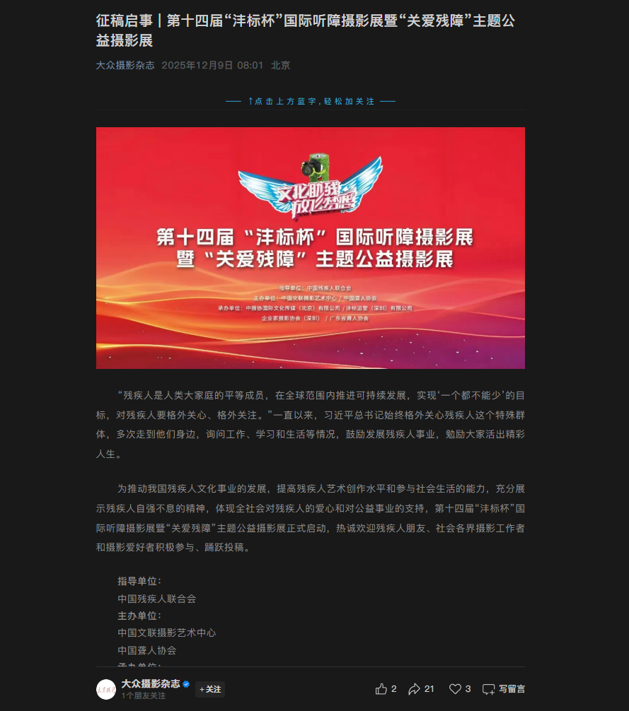公益沣标杯 / 第十四届“沣标杯”国际听障摄影展 / 媒体报导