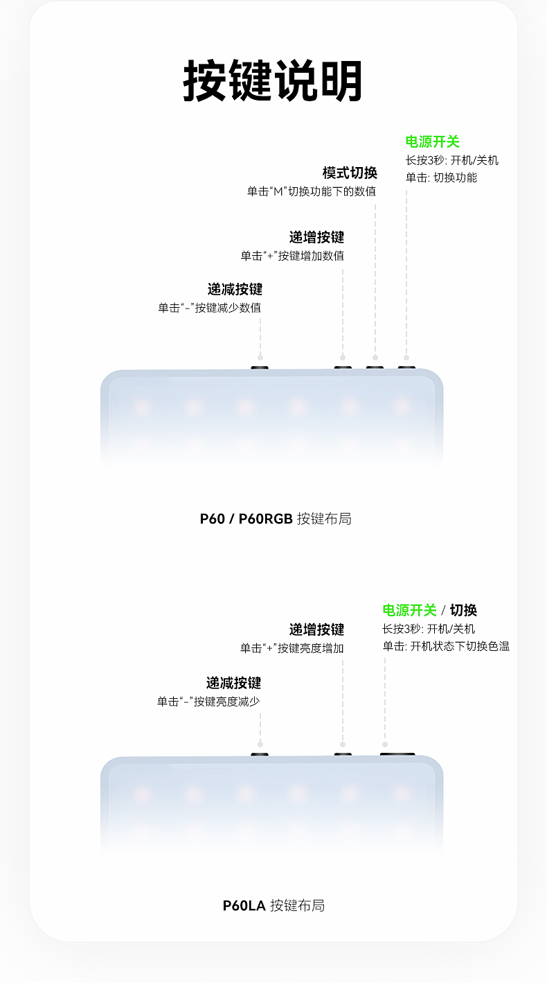 FB沣标 便携式 摄影补光灯 P60 / P60LA / P60RGB 系列