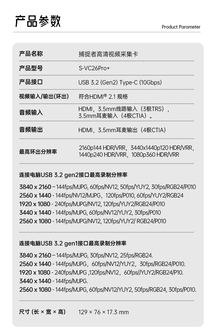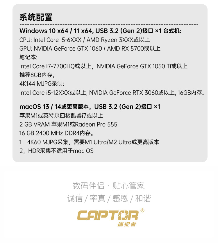 CAPTOR捕捉者 4K30/RGB24高清视频采集卡 S-VC26Pro+