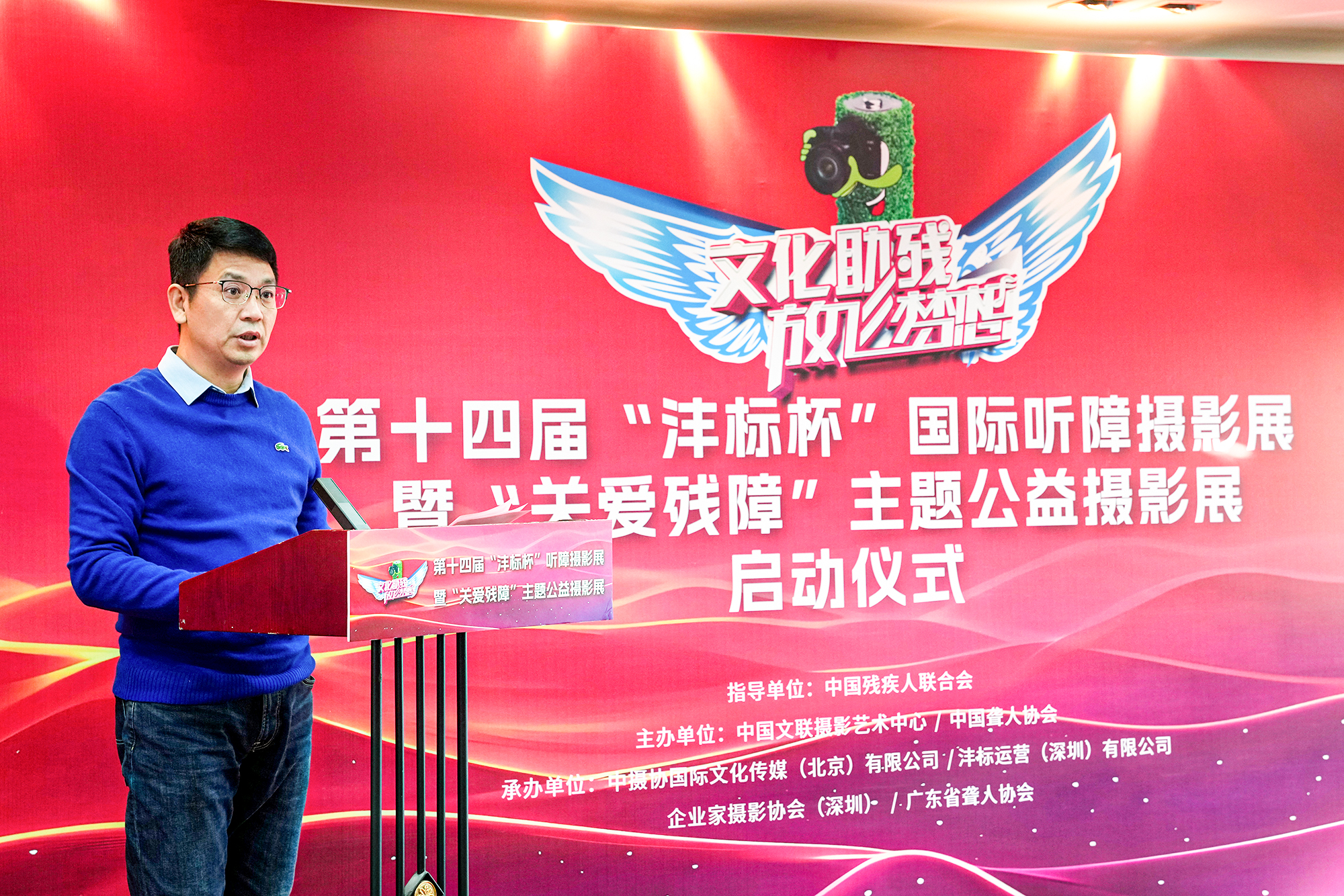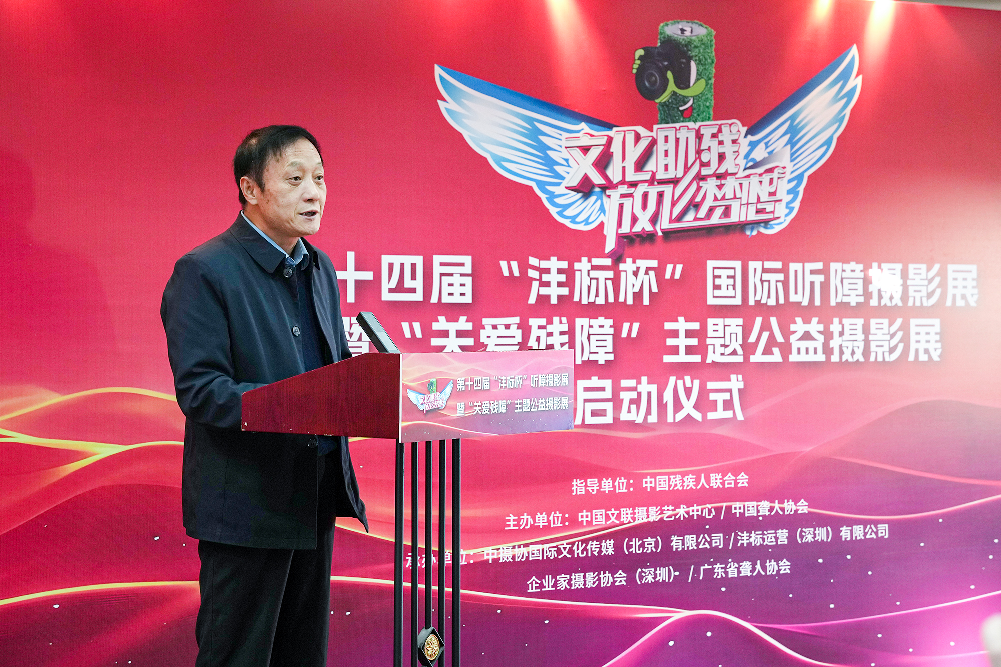 李舸宣布第十四届“沣标杯”国际听障摄影展暨“关爱残障”主题公益摄影展启动。中国聋人协会主席范宜涛通过视频预祝本次活动成功举办。